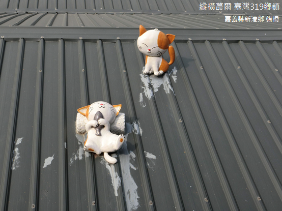 「貓橋」是園區內新興亮點,最初只是銜接工廠與餐廳休閒區之間搭建的鐵天橋,隨後在園長夫婦的巧思之下,將原本單調乏味的鐵皮屋頂擺上各種樣態的小貓咪,有爬牆的、有睡覺的、有並肩賞月的,每隻貓都十分活潑,討人喜愛。