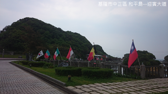 走進海角樂園,各國國旗飄揚在迎賓大道旁,島中島好似一艘船停駐在水中央,通往豆腐岩與阿拉寶灣的步道受落石影響封閉整修,因此,我們只得朝蕃字洞走去。