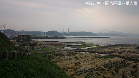 俯瞰「萬人堆」陣容氣勢磅礡,步道漸漸下降,原先出發點朝東能夠瞧見八斗子峰巒綿延,接近終點則能夠極目野柳岬伸向大海,基隆港對岸協和發電廠煙囪亭然,與腳下仿聖薩爾瓦多堡壘相映,構成超現實奇異風光。