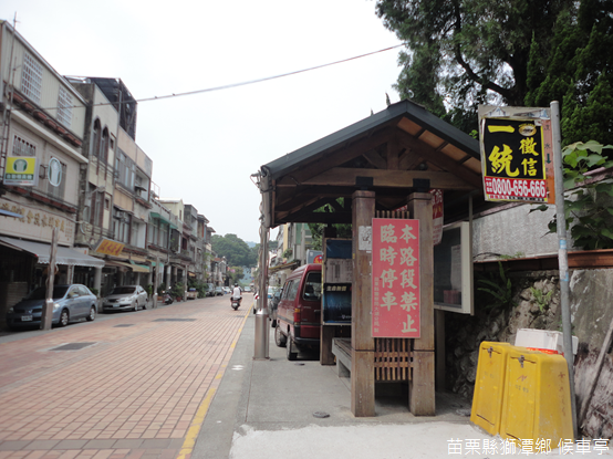 汶水老街上大多數的街屋早已改建成透天樓房,只剩下「宋媽媽客家菜包」對面約莫六連棟留下兩層樓式樣,窗前盆籃花草稀疏,大門深鎖,門可羅雀,「全展客家美食餐廳」與「永和亭飯店」偶聞人聲,老婦人挪出矮凳四顧來往旅客,徐徐涼爽又濕潤的微風打溪畔送來,候車亭斑斑時刻表企盼著游子回家。