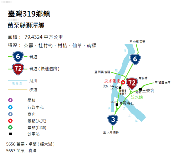 途經「河排」、「轉溝水」等陌生的村莊,我們終於抵達獅潭,位處苗栗縣地理中央,早期屬於賽夏族的領地,清朝年間黃南球率領客籍先民開闢竹苗山區,受到優勢武力攻擊,原住民被迫移居八卦力後山,所以目前是以仙草聞名的客家鄉鎮,境內多屬水庫保護區,開發受限,人口外移,如今每四人當中就有一人超過65歲;除此之外,就在鄉內北部,橫亙一條山稜貌似獅子俯臥啜飲潭水,成為「獅潭」一名來由。