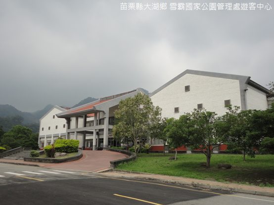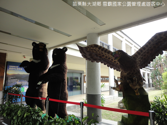 管理處外廣植光臘樹,前庭青草綿延,丘陵巍然聳立如同紙鎮,地廣物稀,恬淡寧靜,這方據點直到民國90年(2001年)2月才正式進駐,取代臺中東勢成為雪霸人的新家,入口門廊展示臺灣黑熊與老鷹放大模型,栩栩如生相當驚人,轉彎走進展覽廳,一股沁涼的空氣撒落項背,壁面大霸尖山壯麗宏偉的山巔映入眼簾,即使曾未親臨其足下,也很難不被祂雄渾的氣勢所欽服。
