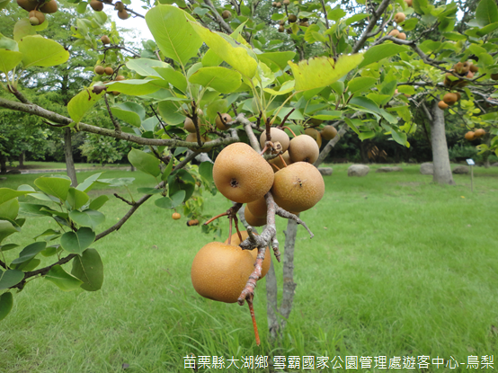 離開錦鱗悠遊的池塘,通向後方的步道上忽然見到結實累累的果樹,無論是果皮色澤或是形狀都像是市場上購買的水梨,但是體型又比水梨小得多,後來才知道這種樹叫作「鳥梨」,又稱作「嶺南梨」,原產於大陸廣東,在臺灣中北部海拔300~1000公尺的叢林中也找得到,因為是本土種抗腐爛能力較強,往常會使用作嫁接的砧木,也因為果實口感酸澀,多半會製成蜜餞或是糖葫蘆食用。