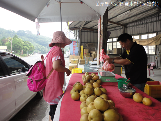 大湖鄉清朝以前是泰雅族聚居之地,咸豐六年(1856年)苗栗一堡新雞籠庄人吳立傳出獵觀音山附近高地受困,其姪吳定新馳援,見到此地山環水繞自有一處盆地,平原中茅葦花齊放,微風吹遇處如湖面波狀,故命名為「大湖」,隨著國人飲食習慣改變,原本的稻田轉作草莓園之外,城郊山坡地更廣植豐水梨,沿著內山公路行駛,綠樹村邊合,青山坑外斜,面對滿山梨園,農家主人爽快地邀請品嘗當季收成的豐水梨,果肉白嫩細緻,汁液甘美清熱。