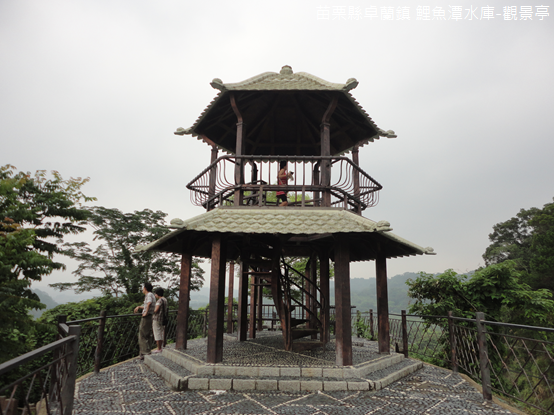 憑欄環顧,三豐公路好像是伸展翔翼的鷺鷥一般,凌駕在霧氣迷茫的水波上,附近的高地縱橫交錯,彷彿群獸飲於湖畔,如果從水庫來看,又好像蛟龍身軀蜿蜒無數,向著西方雲彩奔騰,平臺前的芒草與闊葉林增添山林的野性,卻是與矇矓水霧相容,我順著螺旋梯步上觀景亭,視野遼闊,更覺浩氣萬千。