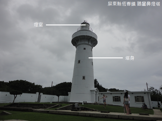 除了燈塔本身之外,周遭部分辦公室修飾成展示室,介紹臺灣燈塔歷史、簡介、圖片和模型等等,燈塔西側廣場闢建12個儲水池,收集平日雨水供乾季時使用,園區西北與東南兩角各有一個碉堡,可以駐兵守衛,燈塔本身則分為燈室與塔身兩個部分,會發光的燈具就在燈室裡面,光力有180萬燭光,光程達27.2海哩,每十秒一閃,是目前臺灣光力最強的燈塔,也被譽為「東亞之光」;塔高21.4公尺,共有六層,外層由生鐵鑄造,塗上白漆既顯目又有隔熱作用。