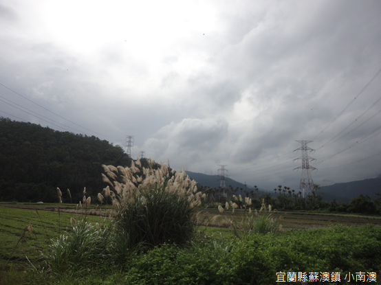 遠離街坊滑向田野,田野不時可見白鷺鷥翱翔其間,牠輕盈的身影投射在水面上潔白明亮,越過小溪上高起的橋梁,藍色車身銀色線條的區間車打頭頂穿梭,引起田中五節芒一團又一團的騷動,整片高壓電塔由山區延綿而下,看似破壞村郊寧靜的氛圍,卻也藉由電塔身形比例,得以揣測谷地之寬闊。