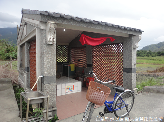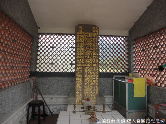 如今,「羅大春開路紀念碑」靜謐地供奉在震安宮旁的石屋中,要是只專注欣賞田園風光,多半會過其門而不覺,石屋經過整修,牆柱鋪上洗石子花紋,屋內方寸不足旋馬,除了碑文之外,也奉祀開路時失足或是遭遇泰雅族人攻擊喪生的清兵,石碑長207公分,寬61公分,厚14公分,以仿宋體刻成,曾經倒臥荒野,重新整理樹立之後文字依舊清晰。