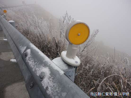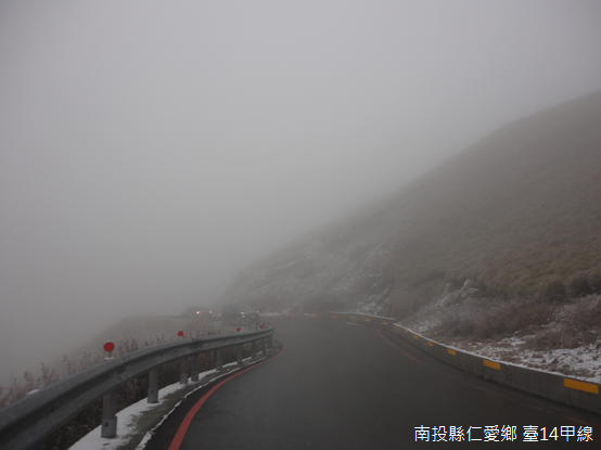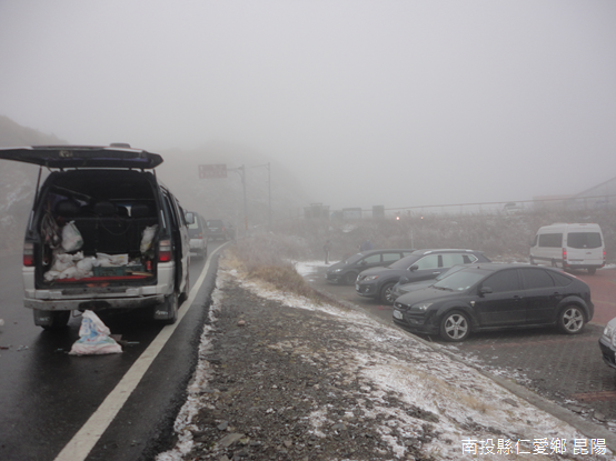 早上10點與弟弟在梅峰會合,旋即駛向合歡山,「大陸冷氣團發威,加上水氣自華南移入,合歡山武嶺一帶清晨降雪,玉山從凌晨5點40分至7點,降雪累計0.4公分,高山地區白天仍有降雪機會,交通部公路總局出動剷雪車清理路面積雪,臺14甲線昆陽以上路面已經結冰,武嶺至大禹嶺實施交通管制,車輛須加掛雪鍊才能通行。」收音機不間斷放送新聞,窗外山嶺依然蔥綠,只是隨著海拔升高,雲霧卻漸漸矇矓。
