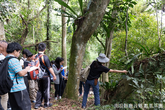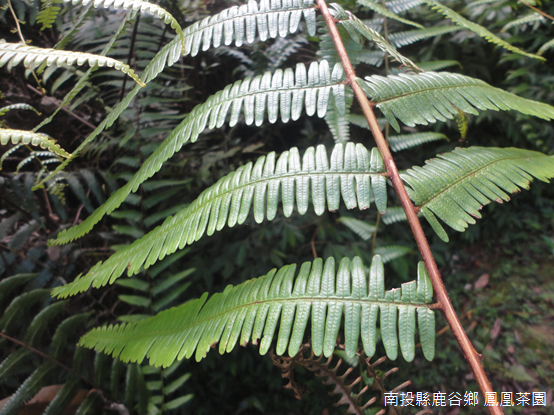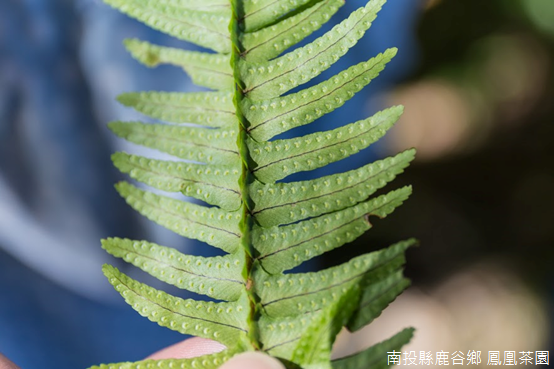 「山蘇通常會生長在樹幹分岔低凹處,葉緣平滑略呈波浪狀,不過像是在鳳凰茶園,幾乎找不到葉片完整的山蘇,你們知道為什麼嗎?」趙怡珊不禁笑了出來,「因為都被晨運的阿公阿嬤摘下來炒菜了!可是,一般市面上販售的是『南洋山蘇』,而不是眼前的『臺灣山蘇』,臺灣山蘇不是不能吃,而是因為味道非常苦澀,想確認是不是南洋山蘇,可以從羽片中軸截面來看,如果下半部是三角形,才是市面上賣的山蘇。」