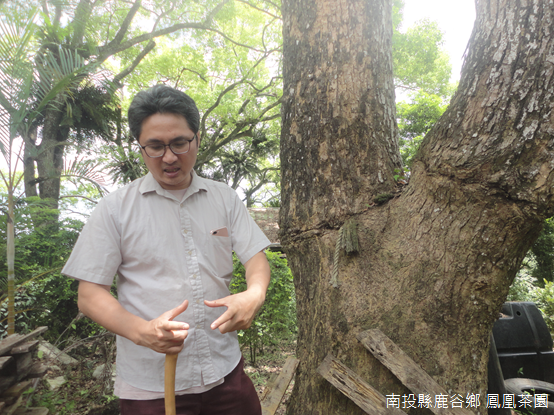 「鳳凰茶園的櫻花很有名,櫻花開了,正妹就來了;正妹來了,痴漢就來了;痴漢來了,他的家人也來了,然後有一個人就出現了,那個人就是我。」一片清脆笑聲中,曾經診斷溪頭神木的臺大實驗林區樹病博士蕭文偉接續課程,他攀上土堤,從草坪搬下一段腐朽的櫻木。