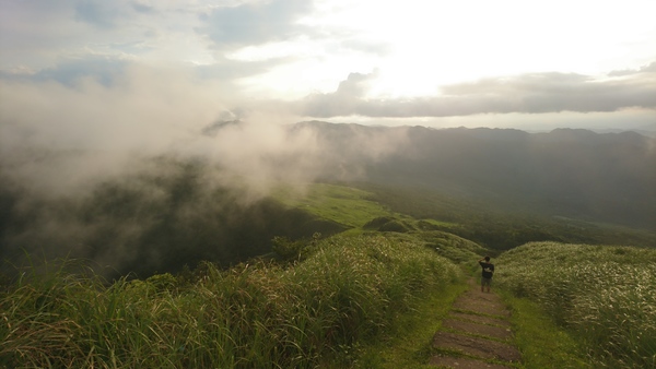 循原途折返,離開箭竹草叢之後視野豁然開朗,來自太平洋的雲霧依舊不止息奔流,有如白馬馳騁,縱身闖蕩丘壑縱橫的山林,而人影渺小,人跡渾沌,倉促穿梭山徑前後,相對於植被跟隨著季節遞嬗榮枯,一如煙雲,四面匯集,八方離去。行到水窮處,坐看雲起時,重回桃源谷,餘暉潑灑油亮的青綠光澤,從腳下綿延到天涯。