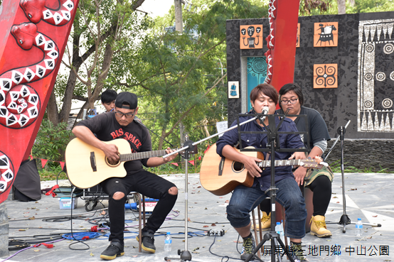走下小山丘,進入公園時聽見的歌聲更清晰了,繪製圖騰的廣場中央,許多遊人坐在椅子上休息,而彈奏吉他的歌手則坐在青銅刀、陶壺和琉璃珠組成的高塔下高聲哼唱,活潑輕快的旋律有如奔放山風一般跌宕起伏、行雲流水,「希望大家喜歡我們的表演,但是如果覺得我們唱得不好聽,你們可以去投書啊!」掌聲中,他們打趣說到。