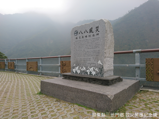 莫拉克颱風在三地門鄉降下超過3,000毫米的雨量,當時屏北各部落岌岌可危,救難人員只能冒險駕駛直升機,或是徒步挺進災區救援;民國98年(2009)8月11日下午3點30分,編號NA-50252之UH-1H直升機從內埔農工起飛,順著隘寮溪谷到谷川部落運補,由於河谷濃霧瀰漫,只能低空飛行,卻不幸勾到早年運送物資的纜線,接著撞擊山壁墜毀河谷,正駕駛張順發、副駕駛王宗立和機工長黃鎂智因公殉職,如今在大橋三地門端豎立「救災英雄紀念碑」,深深刻下歷歷往事。