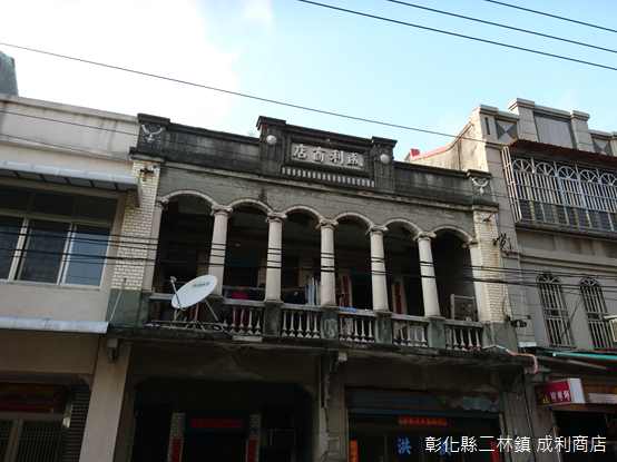 原本以為當地老建築留存不多,沒有想到,不只是市街保留早期棋盤式的規劃,仁和宮附近不少街屋也可以見到過去匠師的巧思,其中,中正路上的洪牙科診所,外牆以六個圓拱圈配合中間的五根圓柱子作支持,屋頂女牆部分的牌樓面,則以左右三段來分隔,中段故意抬高,上面標榜「成利商店」,式樣相當精美。