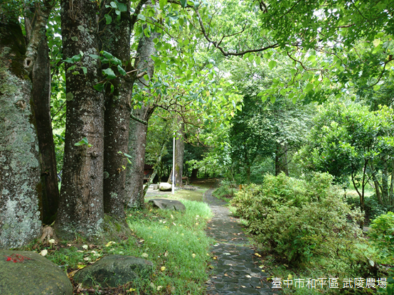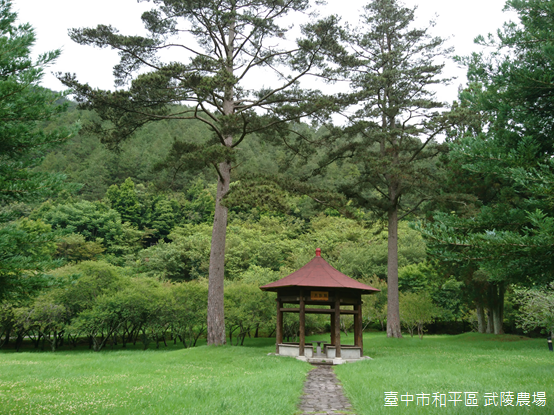 筆直聳立的松樹林下是成片的梅林,武陵農場櫻花、桃花、李花夾道盛開,是令人最深刻的印象,少去繽紛花海,梅園有如一片柔軟的綠霧,將松林中的涼亭團團輕籠著。