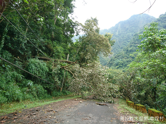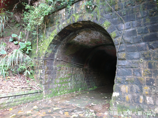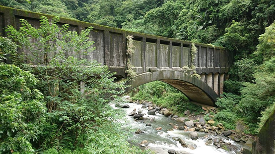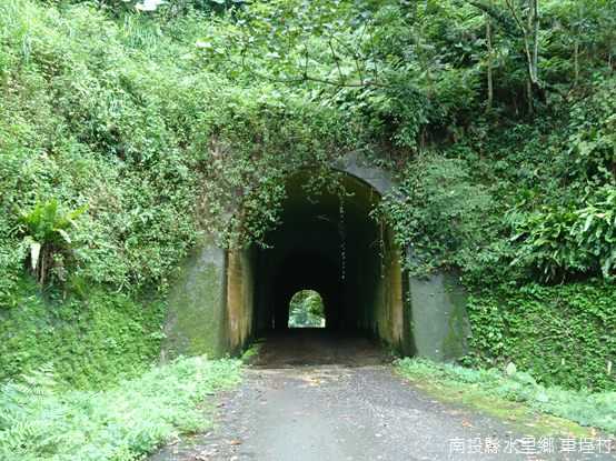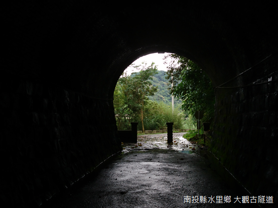 水里水橋和大觀古隧道距離車埕不遠,由於位置隱密而鮮有人跡,連日大雨讓樹木滑落山坡,電線桿也跟著傾倒,我們因此站在路旁觀望許久,好奇心驅使之下,還是決定跨過樹堆,小心翼翼沿著道路行走,幸好,隨後路況平順,穿越短隧道以後就看見跨越小溪的水橋。