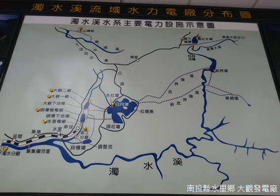 躊躇了一陣子,還是決定拜訪縣道131號途中的大觀發電廠,簡報室除了展示發電機,典藏日月潭水力發電相關的文獻資料,櫃台販售的臺電冰棒顯然最受歡迎,冰品包含養樂多、南瓜牛奶還有紹興酒釀等等口味,一群「鄉里團」乘坐遊覽車,嘰哩呱啦跟隨導覽參觀電廠,眼見他們走進簡報室,原本打算吃冰後遊逛廠區就好,我卻意外地被導覽的解說所吸引。