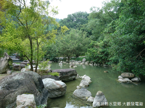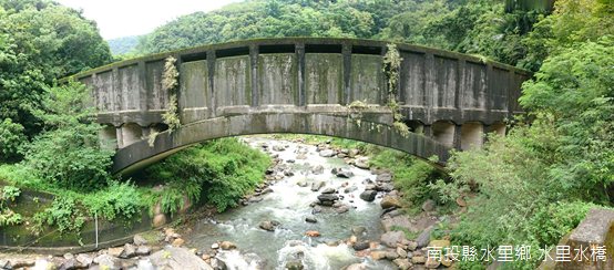 在日月潭的另一端,建築水社壩和頭社壩提高潭水水位至21公尺,湖水再透過長度約有10公里的水隧道和長達2公里的鐵管路線引水到水里溪,昭和9年(1934)7月竣工,「連接日月潭和大觀電廠的水隧道整段幾乎都在山裡,只有一小段要跨過電子坑溪才架橋樑,我們叫作『水里水橋』。」