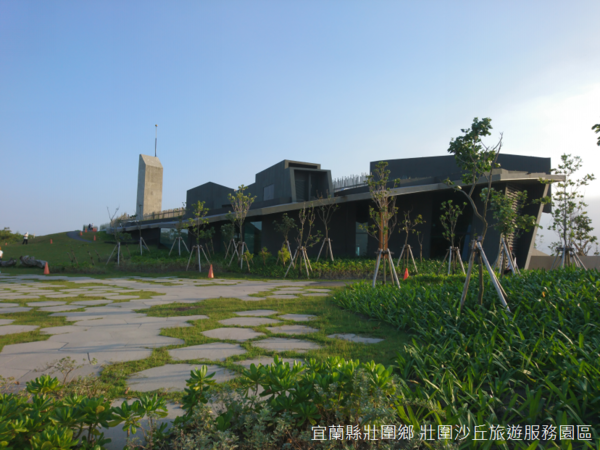 防風定沙、沙地與沙岸上的紋理,成為建築一座美術館的靈感來源,民國107年(2018)4月28日,「壯圍沙丘遊客中心」落成,建築師黃聲遠帶領的「田中央」團隊,以「空出谷地,看見沙丘」為設計理念,灰色質樸的清水模外觀,建築體的輪廓彷彿海岸沙丘的延伸,讓遊客中心低調地融入地景當中。