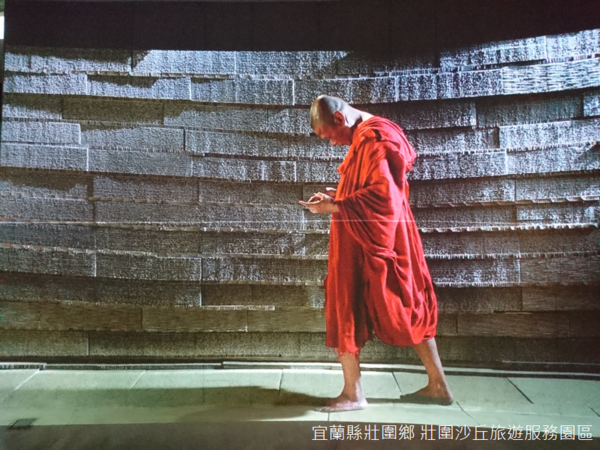 遊客中心內的展覽,則是由導演蔡明亮操刀,為了「行者」的策展,導演短短半年內往返宜蘭不下百次,將宜蘭海岸擁有的元素和抽象藝術相互融合,展廳內分成塵、風、雨、海、潮以及月光六個主題,最引人注意的,一襲深紅僧衣的僧侶行走其間,讓僧侶走進展覽,就像是將展覽走進建築一般,導演認為,這些都是上天的安排。