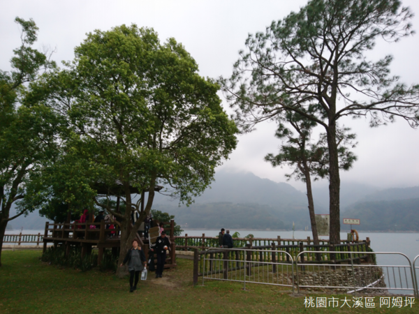 離開茶廠,道路順著石門水庫北岸蜿蜒,下意識地,我們將車子開進阿姆坪碼頭--四年前曾經駐足的地方,縱使距離臺北不遠,那卻是第一次拜訪北橫公路,當時我才剛接受手術並且出院,全家人走過羅浮、復興雙橋,又轉到羅馬公路,途經溪口、奎輝,以及高遶等等村莊,到達阿姆坪時已經接近黃昏,寬廣平靜的水面撒上淡淡的暮色,不曉得當時是否也注意到,涼亭旁邊一棵高而挺拔,一棵圓而茂密的樹木呢?