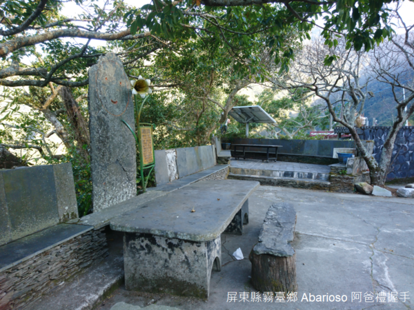 位於上部落下方的龢木谷民宿,同時也是阿禮頭目家屋,Abarioso(阿爸禮握手)是家屋的名字,隨著時代演進,石板屋裝上鐵門、鐵窗,住屋仍舊保留傳統的格局,寬敞的前庭,前庭邊緣豎立石碑,石碑兩旁是石板疊砌的座椅,不難想像過往頭目站在石碑前發號施令,或者族人歇息聊天的情景。