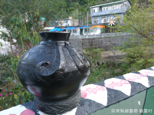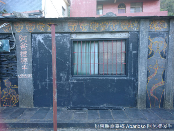 琉璃珠花紋的水缸應該是後來新增的物件,不過,石牆倒歷經不少風霜雨雪的洗禮,其中一幅百步蛇纏身的女子彩繪圖案,描述魯凱族最著名的巴冷公主和百步蛇王「阿達里歐」的淒美故事,據說,頭目就是從臺東遠嫁到阿禮的巴冷公主後裔。