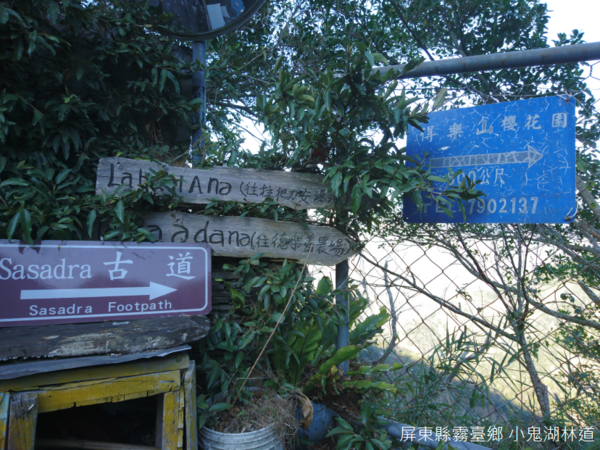 「Sasadra古道」連接阿禮村上部落和下部落,Abarioso家屋外的林道,度過櫻花樹林延伸至霧頭山腳下,更遠處,攀爬於山腰的林道彎向深林,潛入中央山脈最神秘的地域。