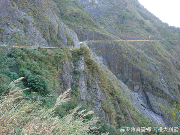 通過險阻,村民也指引我們將車子開到安全的地方,幾棵大樹的縫隙正好和阿禮大崩壁對望,與車輛的比例相對照,才看出崩壁氣勢的磅礡和險峻,無論重機或者汽車,在陡峭山壁上簡直命懸一線,「往前大概再10分鐘就到阿禮村了,慢慢開啊!」語畢,村民又走回護欄旁,凝視著大崩壁。