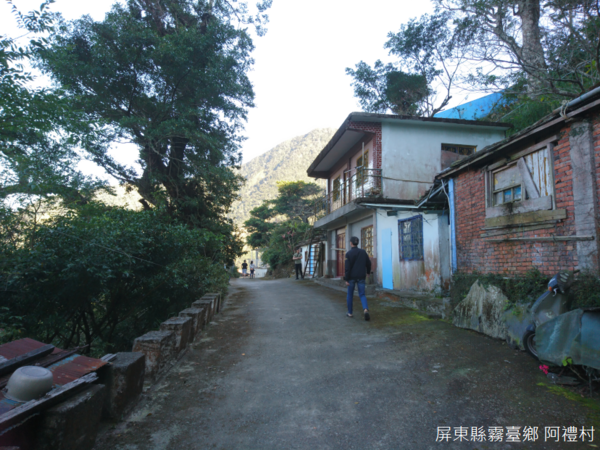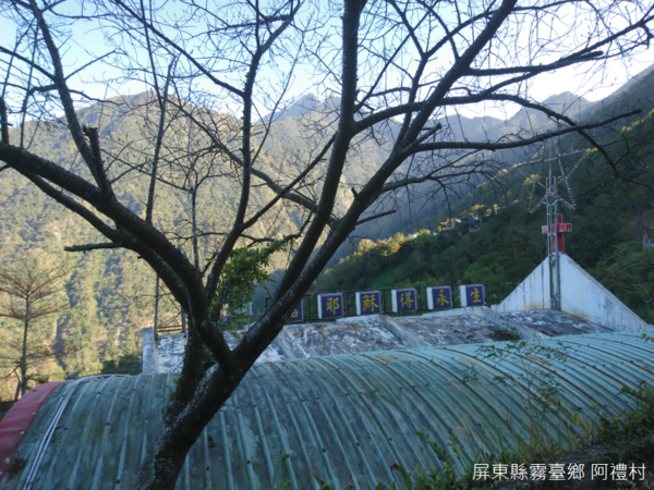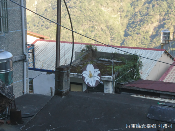 一樣受到暖冬影響,阿禮村只有零零星星三兩棵櫻花點綴,儘管如此,彩繪百合圖案的雷達,裝飾琉璃珠的欄杆,依傍山勢而建的墓園,濃烈地文化氣息都讓山景增色不少,下部落荒廢的住家、教堂,龜裂的巷道,又使部落顯現荒涼的況味。