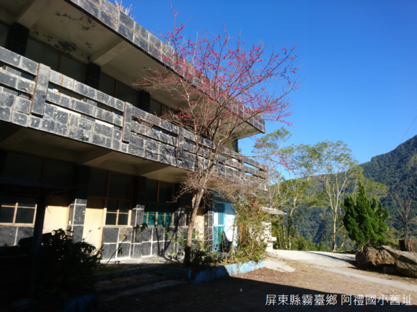 櫻花盛開的時候,也是臨時便道的柵門難得開放,車輛可以抵達阿禮村的時候,進入村中之前,先將汽車停妥於阿禮國小舊址,停車場面朝霧頭山,青翠山巒和蔚藍天空是佈景,如茵草皮彷彿可以席地而坐,應該也是觀賞星空的理想地點。