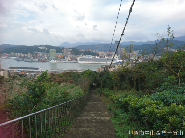 面對基隆港、基隆市街,以及遠處的基隆山,半山腰豎立「KEELUNG」字樣的曾子寮山,海拔110公尺,頂上一座古砲台,覽盡港內船舶來往,曾子寮山與「曾子」沒有關聯,名字其實源自「罾子寮」,「罾」(音同「曾」)是一種四邊有支架的方形魚網,早年漁民以罾捕魚,並且在海邊搭建工寮,得名「罾仔寮」,基隆港建成後,漁人撒網捕魚的景象不復存在。