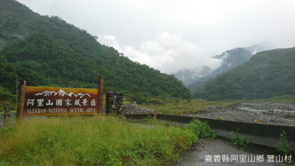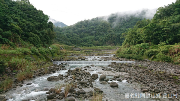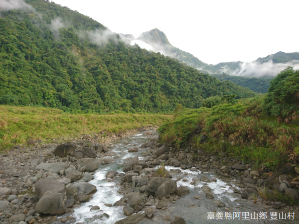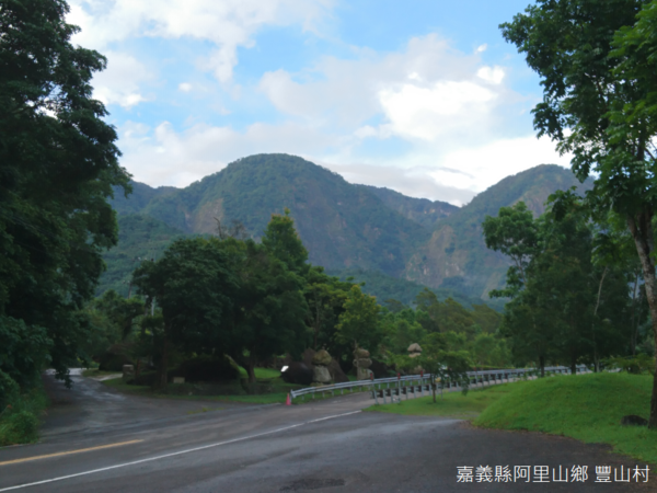 石鼓盤大橋對岸,豐山村舍儼然,日據時期,日人為了開墾清水溪上游豐沛的樟腦資源,招徠平地人提煉樟腦,最先前來的是新竹山區的客家人,隨後,鄰近梅山鄉瑞里、瑞峰、太興等地的村民陸續遷入開墾,久而久之,原本居住於此的少數鄒族人南遷來吉,豐山村遂成為純粹由漢人組成的聚落。