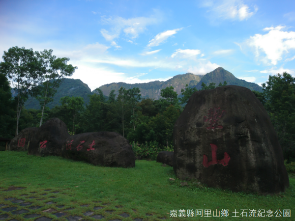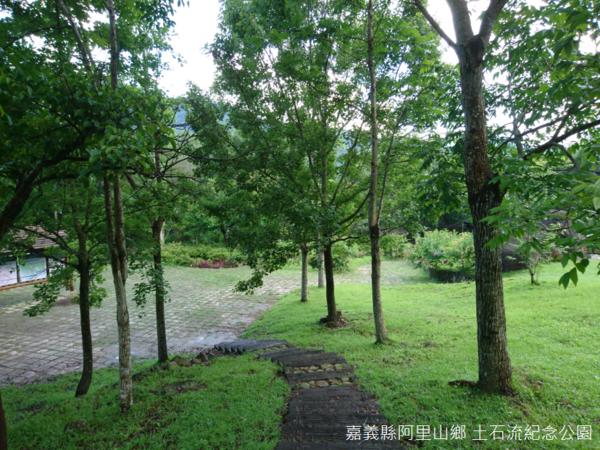 源自乾坑溪上游險峻山頭的土石,豪大雨發生時,巨石大多停留在中上游,較小的石頭則被搬運至下游平緩地帶,百年前土石流的遺跡,如今早已雜草叢生,民國92年(2003),阿里山國家風景區管理處興建「土石流紀念公園」,除了環狀步道,園內更有解說牌詳盡地敘述土地的故事。