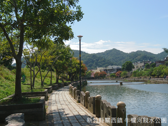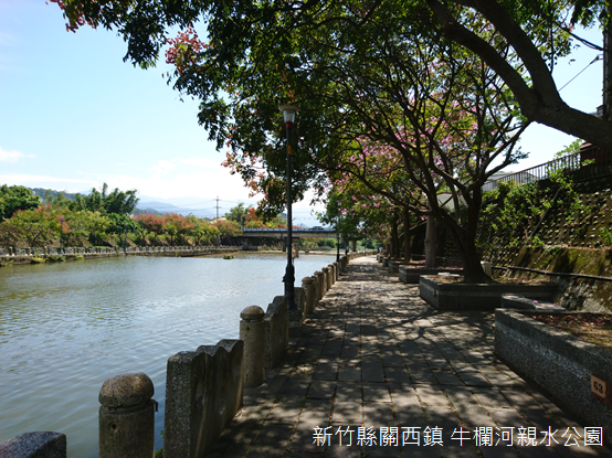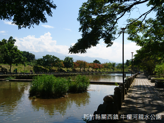 即使不過是鳳山溪的其中一條支流,牛欄河卻是關西世世代代人們生活的舞臺。百年前當地人在河畔搭建柵欄牧牛,又有無數孩童戲水的歡笑,還有婦人談話之間此起彼落的擣衣聲,百年後的今天,清朗的天空,使河流兩岸的樓房、菜圃充滿朝氣;魚梯前,幾隻白鷺鷥守候魚兒上鉤,有些旅人了解白鷺鷥的聰明,更發覺白鷺鷥站立處的巧妙,也紛紛踏上設置魚梯的水泥壩,架設相機捕捉有著欒樹花開,色彩斑斕的秋日采風。