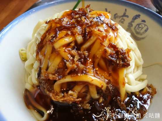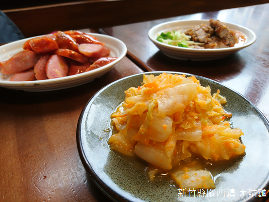 「石店尾10號」字樣刻在桌面角落,漂浮芋角餛飩的熱湯、嵌入杏鮑菇的香腸、佐以五花肉與泡菜先後品嚐,同樣盛裝在白瓷碗內,熱騰騰的關西扁麵淋上香蔥油調味,香氣甜蜜又濃郁。老店創始於民國44年(1955),「ㄤ咕」是客家話裡祖父逗弄孩童的俏皮話,孩童覺得有趣,於是也「ㄤ咕、ㄤ咕」的叫著,「來去ㄤ咕的吃麵!」成為顧客習慣的稱呼,如此延續了將近70年歲月。如果ㄤ咕麵是探索關西味道的起點,桌角「石店尾」正是開啟關西故事的通關密語。