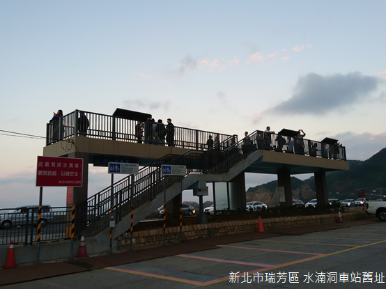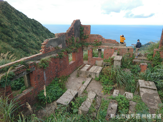 離開報時山步道,附近的斜坡索道徒留斷垣殘壁,有些人坐在紅磚牆上,有些人則站在延伸向山下的索道跟前,模仿著Instagram裡網美的拍照姿勢,在滄桑的景色面前留下片刻青春的記憶。從報時山一帶直下水湳洞,斜坡索道是金瓜石採金時期最重要的運輸工具之一,不僅載運礦石,也提供客運;儘管如今徒留廢墟,許多在地有志之士仍然盼望著索道復駛的一天:只要索道通車,串連海邊水湳洞連接到八斗子的鐵路,金瓜石必將能恢復昔日的榮景。
