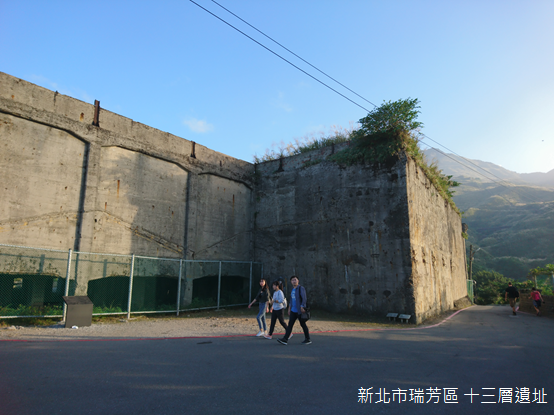 依山而建,十三層遺址本名「水湳洞選煉廠」,落成於昭和八年(1933),民國34年(1945)由「臺灣金銅鑛務局」接手,民國44年(1955)改組成「臺灣金屬鑛業股份有限公司」(簡稱「台金公司」),最多時曾有8000多人在此謀生,台金公司更擴大至金瓜石後方的樹梅地區大規模露天開採,直到民國76年(1987)結束營業,民國96年(2007)登錄為歷史建築。
