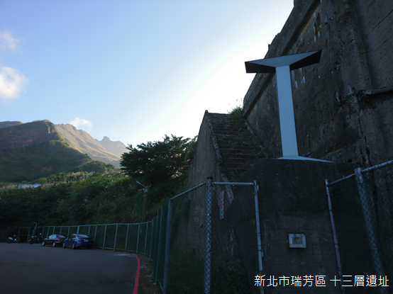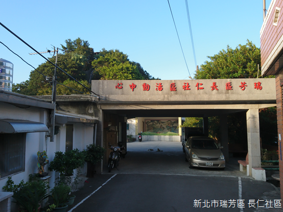 除了報時山之外,觀賞十三層遺址究竟還有多少理想的地點?依照新聞報導的推薦,我們由金瓜石順著金水公路蜿蜒而下,並且在黃金瀑布右轉長仁社區。長仁社區座落在水湳洞漁港附近的半山腰上,明治38年(1905),金瓜石礦山採礦主任安間留五郎發現硫砷銅礦,於是以礦主田中長兵衛與礦長小松仁三郎之名,命名為「長仁礦床」,長仁社區的名字也是出自於此。