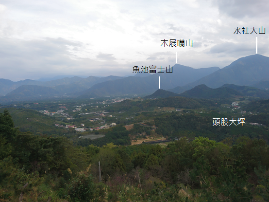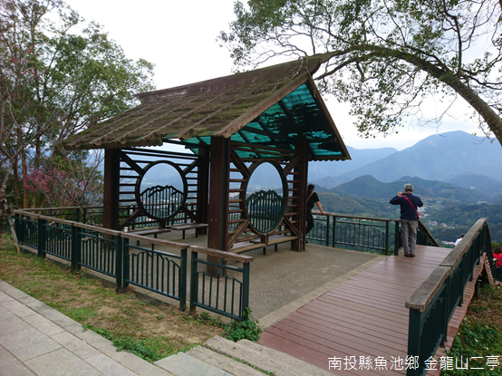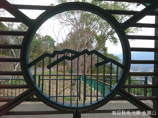 金龍山海拔880公尺,又稱為「槌子寮山」,山上建有三座涼亭。為了因應慕名前來的遊人,民國103年(2014)年底,日月潭國家風景區管理處在金龍山二亭周遭闢建曙光廣場,可以一覽魚池市區附近的山岳。站在二亭跟前,朝視野右側,也就是日月潭的方向望去,日月老茶廠所處的高地稱為「頭股大坪」,高地東面的魚池尖山又稱作「魚池富士山」,海拔815公尺,陪侍在聚落旁,後方同樣尖聳的山岳名為大尖山,又名「木屐囒山」,海拔2016公尺,與海拔2059公尺的水社大山相鄰,如果天氣晴朗,甚至能遠眺卓社大山和干卓萬山兩座百岳。