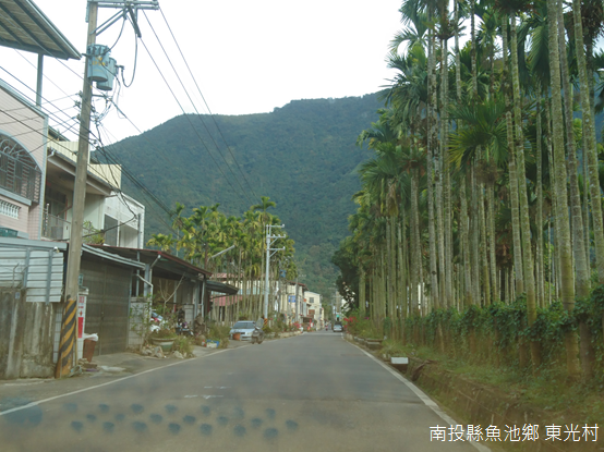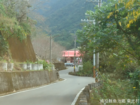 離開臺21線,轉入縣道131號向東行駛,短暫穿越魚池市區,遭遇「九族文化村」路標和檳榔樹林之後到達東光村,令人感到意外的,東光村居民以漢人為主,卻有著和原住民部落相像的入口牌坊。東光村舊名「木屐囒」(bakalan),源自邵族語,是日據時期日月潭七社之一(東光、水社、頭社、社仔社、蘭社、審鹿社,以及福骨社),光復後改名東光,和村內一尊帶有傳奇色彩的巨石有關。