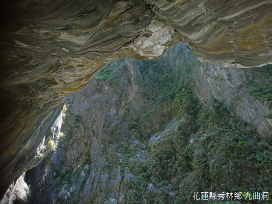 通過第三座明隧道,九曲洞更加崎嶇狹窄,百年來日人建設的產金道路,以及榮民一斧一鑿開闢的洞穴彼此交織,每個轉彎,每個縫隙自成一景。源自於高溫與高壓作用,原先陸地抬升起的岩石溫度極高,呈現可塑性的半流體狀態,扭曲變形成黑白相間、線條流暢的大理石褶皺;更奇特的,儘管形勢險峻,岩壁上不乏植物生長,有如武藝高超的遊俠,盡情展現生命的堅忍不拔,處居逆境卻又安逸自適。