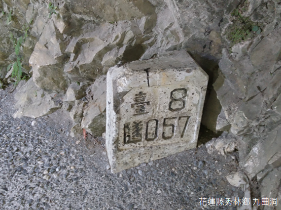 步道終點附近,也是立霧溪兩岸山壁最貼近的地方,民國50年(1961)元月,時任臺灣警備總司令黃杰在岩壁上留下兩行字句:「如腸之迴,如河之曲;人定勝天,開此奇局。」此外,附近的步道旁,一座基石上標註「臺8隧057」字樣,不禁想起父親回憶他大學時一次坐車遊覽中橫的旅程,他說,從臺中東勢到花蓮新城,沿途風景讓他目不轉睛,他更記下中橫總計88座隧道。回望一路走來的峽谷景緻,我們幾度屏氣凝神,流連忘返。
