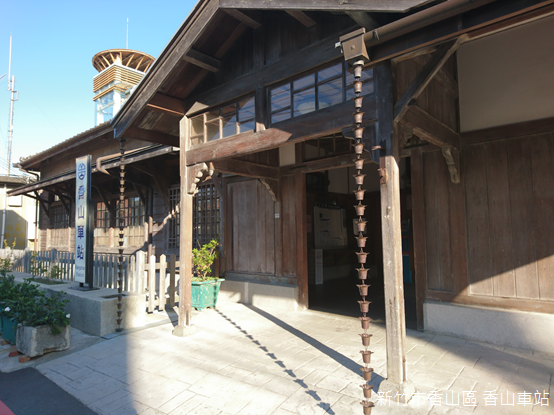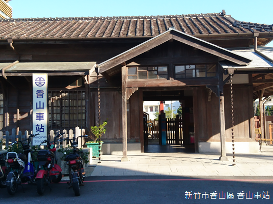 面向臺灣海峽的朝山社區,香山車站隱藏在距離臺一線不遠的巷弄裡。設置於日據明治35年(1902),香山車站曾經是新竹到竹南之間,唯一兼辦客貨運的車站,今日所見的車站則建於昭和三年(1928)1月。車站造型簡單樸實,木造建築,屋頂覆蓋日本黑瓦,兩側山牆處再築出梯形短簷,屬「入母屋造」式樣,車站入口的玄關增設三角形「破風」,玄關木柱上有雕花牛腿式樣的支撐結構。