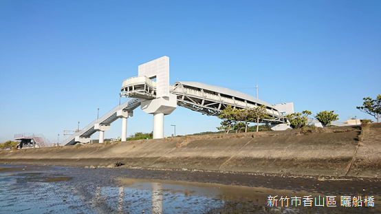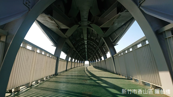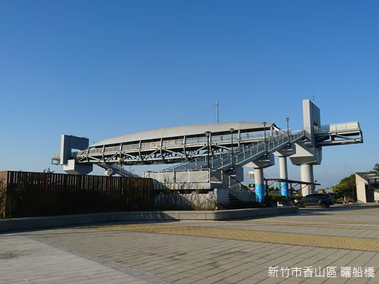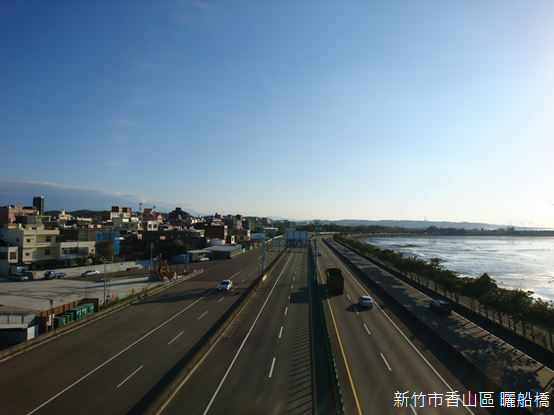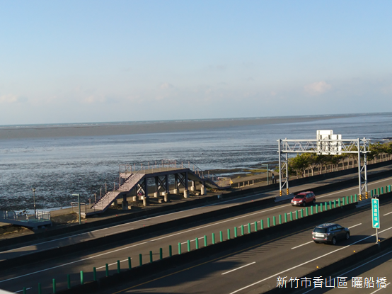離開天后宮,登上鄰近的曬船橋走向海濱。橫跨公路的曬船橋正如其名,好似一艘倒置的船隻,象徵漁船歸港維修,期待下次出航;行走橋上,堅實的龍骨延伸出一條一條平行的船肋,陽光下投射出一條一條清晰的影子,憑欄俯瞰,橋下車流高速行駛,公路沿線的房舍櫛比鱗次,有如月彎一樣綿延。闢建西濱公路以後,香山海岸朝外拓展,天后宮廟埕前保留局部舊有海堤,如果不是刻意停留,似乎很難注意到這座曾經香火鼎盛的寺廟。