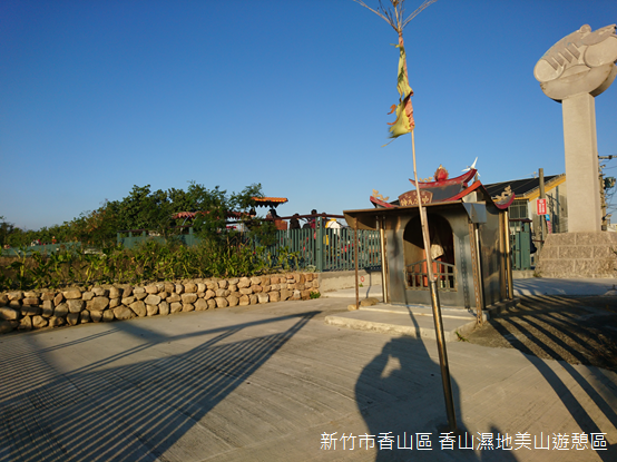 為了搶救寶貴的濕地生態,民國90年(2001)香山濕地被公告為新竹市濱海野生動物保護區,民國102年(2013)更成為國家級重要濕地;除此之外,潮間帶上的賞蟹步道,曾經毀於米塔颱風,民國109年(2020)3月重修嶄露新貌,是新竹市「17公里海岸風景區」沿線上的新興景點。自曬船橋一路迤邐而來,自行車道人潮熙來攘往,賞蟹步道起點處的保安宮,主祀中營元帥,廟前火焰般的旗幟,在傍晚的風中飄揚。