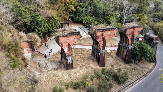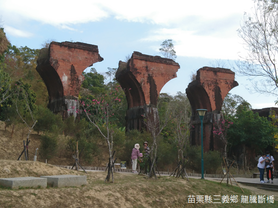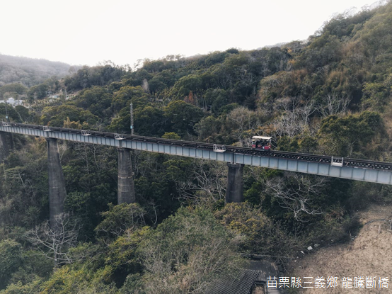 離開勝興車站,我們順著舊山線旁的苗49鄉道南行至龍騰斷橋,魚藤坪新站附近的炮仗花正熱熱鬧鬧地綻放,方才停靠勝興車站的鐵道自行車陸陸續續駛來,「你正在幫我們拍照嗎?」車上的遊人一面笑鬧,一面熱情地向我們揮手招呼。走入斷橋下的廣場,弟弟升起空拍機,鳥瞰四周的景象。