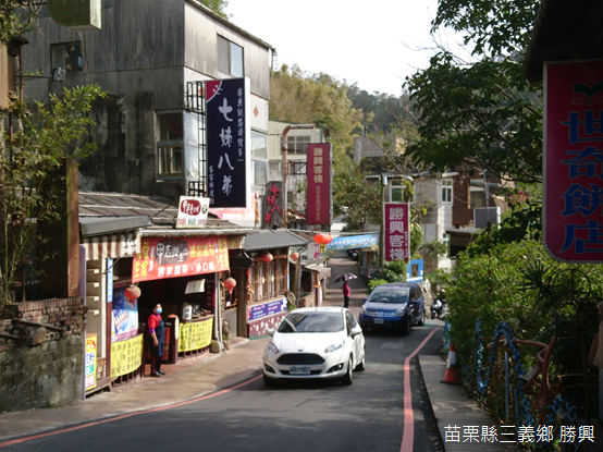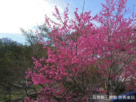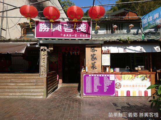 不只熊空的櫻花林,三義的櫻花也感受到春天的提早到來,綻放一樹鮮豔的山櫻。我們將車子停放在距離聚落不遠的地方,徒步走向勝興車站,轉眼間,蜿蜒山路闖進招牌林立的商店街,客家擂茶、客家菜包,或者蜜餞陳列路旁。觀望了一陣子,在店員親切地招呼下,我們走進「勝興客棧」享用午餐。