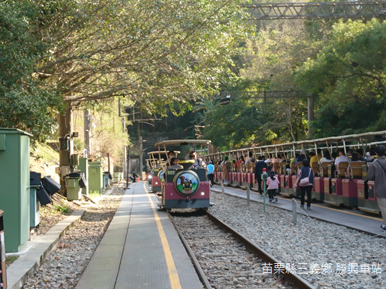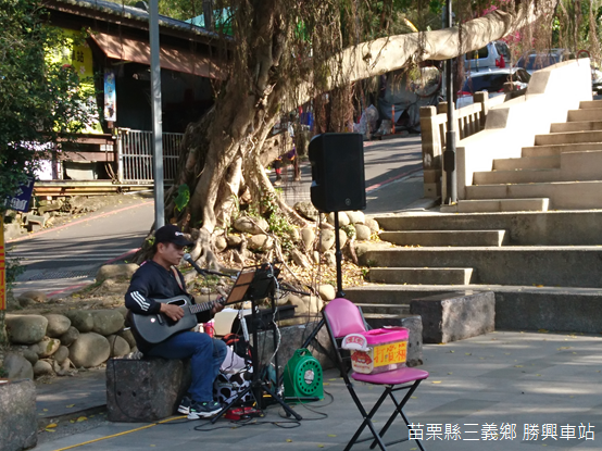 車站附近的大榕樹下,一個歌手吟唱民謠,悠揚樂聲中,遊人三五成群走向月臺,搭乘遊覽舊山線的鐵道自行車(railbike)。民國107年(2018)7月通車,鐵道自行車起自勝興車站,終至鯉魚潭水庫下游的內社川鐵橋,全程約12公里,隔年六月新增魚藤坪新站並正式營運,象徵舊山線鐵道的復甦。有趣的是,由於舊山線為單軌,鐵道自行車的車廂具備「自體旋轉」的功能,當列車停靠勝興車站時,只要工作人員將車廂180度旋轉,遊客就可以循原路重新出發。